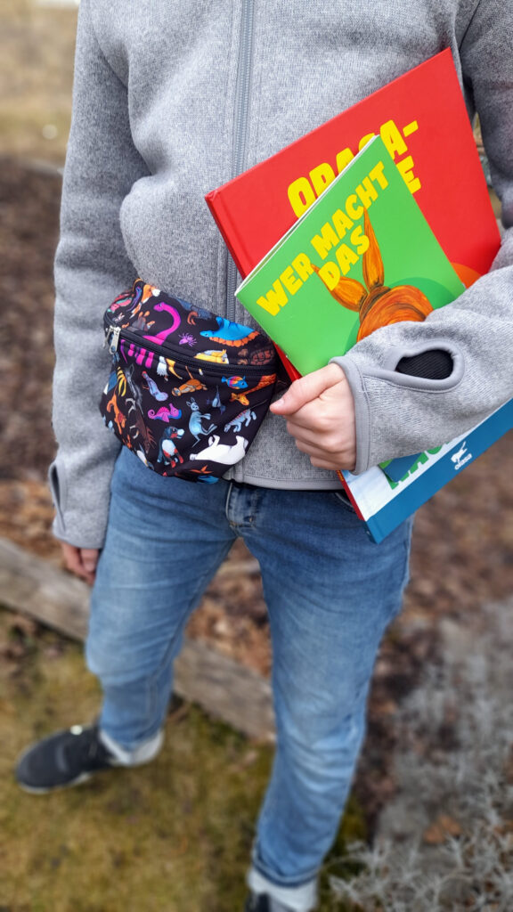 Passend zu den wundervollen Orasa-Kinderbüchern des 4zig-Verlags habe ich aus den Tieren und Wesen vom Orasa-Berg ein Musterdesign als Rapport erstellt, welches als Stoff produziert wurde und nun z.B. als Bauchtasche für Kinder erhältlich ist. Danke für diese gelungene Zusammenarbeit!